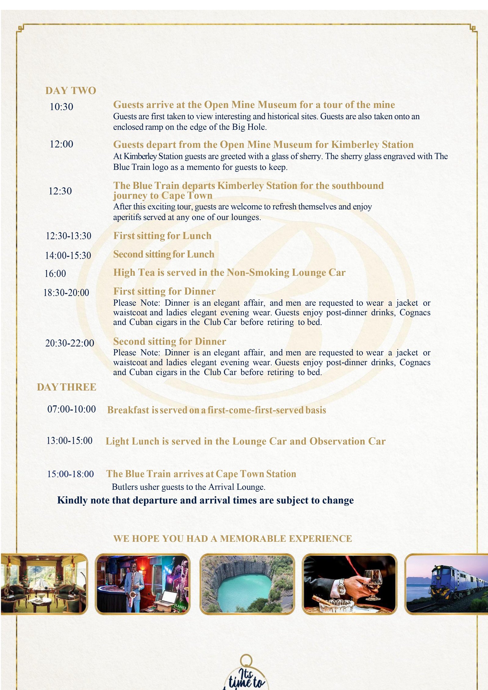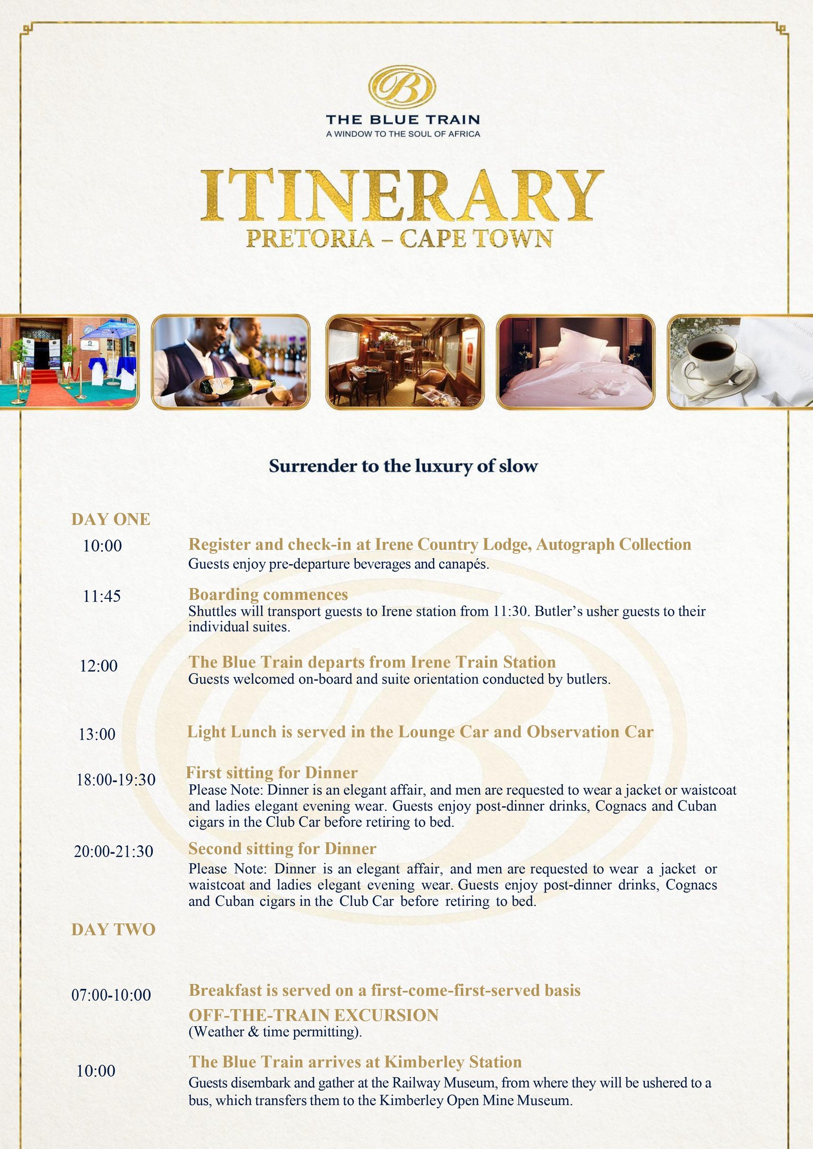 DURATION : 6 Days Trip –Â 3 DAYSÂ BLUE TRAIN & 3 DAYS CAPE TOWN (3 NIGHTS