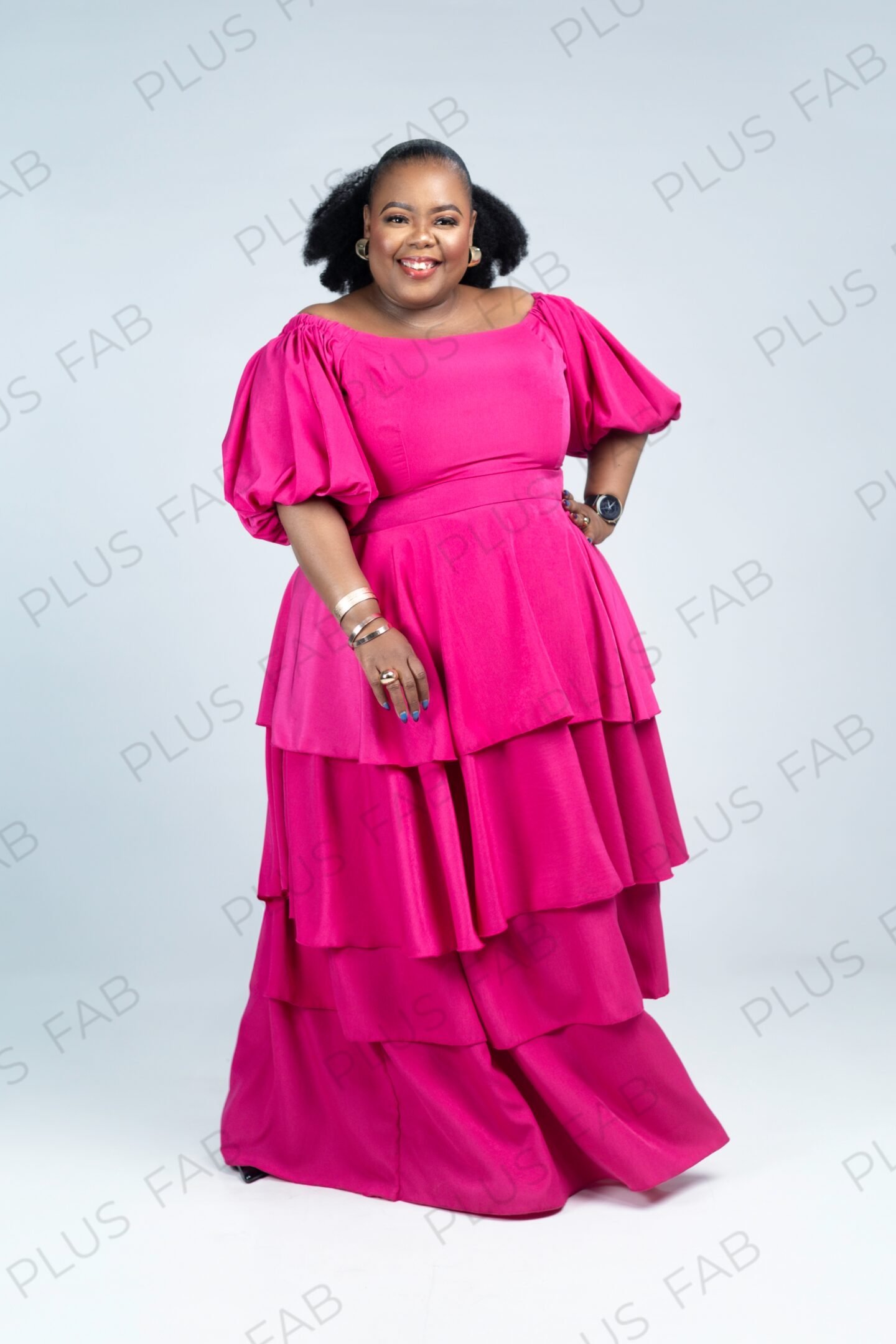 Introducing the Radiant Bloom Dress, a showstopping piece designed to make you feel elegant, confident, and full of life. This vibrant pink dress features soft, layered tiers that flow beautifully with every movement, creating a flattering silhouette that celebrates your curves. The puff sleeves and off-shoulder neckline add a romantic touch, while the smooth, structured fabric gives it a polished and comfortable fit.